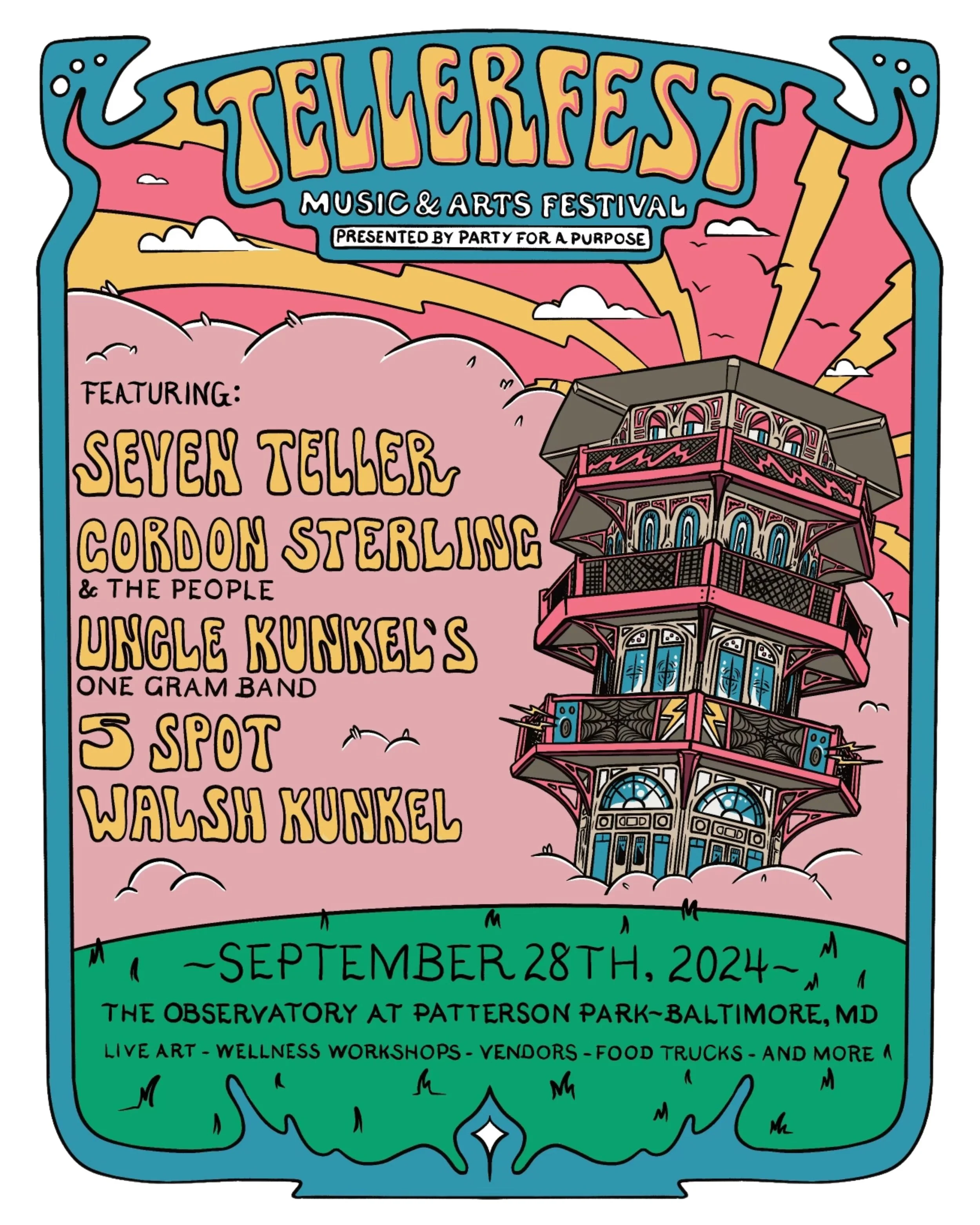 Party For A Purpose presents TELLERFEST 2024! We’ve partnered together to organize a FREE music & arts festival in Baltimore this Fall. The goal of Tellerfest 2024 is to spotlight and raise funds for BOPA (Baltimore Office of Promotion & the Arts) by curating an inclusive space to celebrate music, art, wellness, and more.