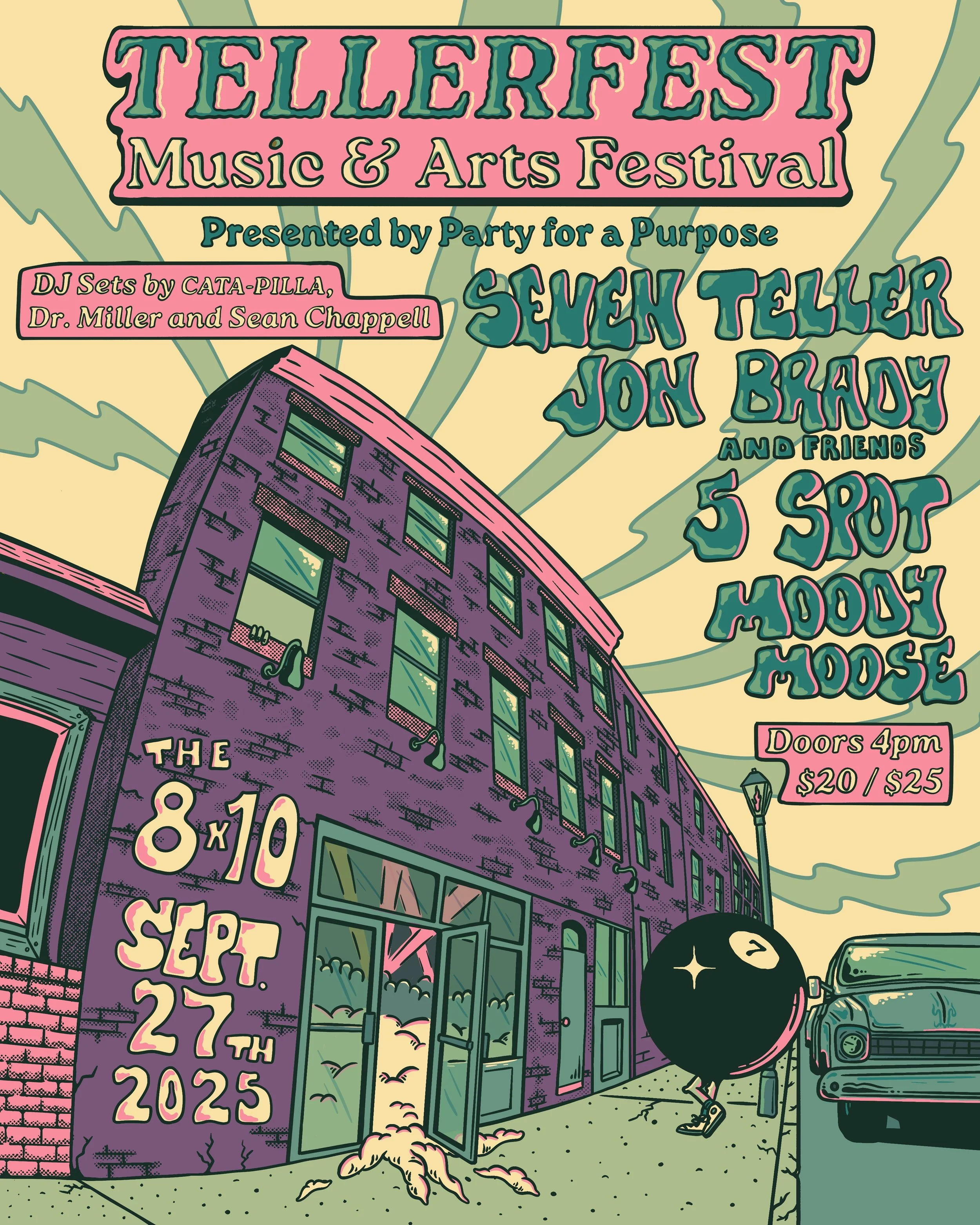 we’re looking forward to having Tellerfest at The 8x10 this year! Our hope is too move back to Patterson Park or another outdoor space in Baltimore in 2026. In order to do that, we need your support. It takes a lot to put on a festival, even at a venue like The 8x10. Purchasing a support package is essentially like getting a VIP ticket, and you will be supporting us directly. Our support package includes admission, a poster signed by all the bands, a free drink ticket, and stickers.